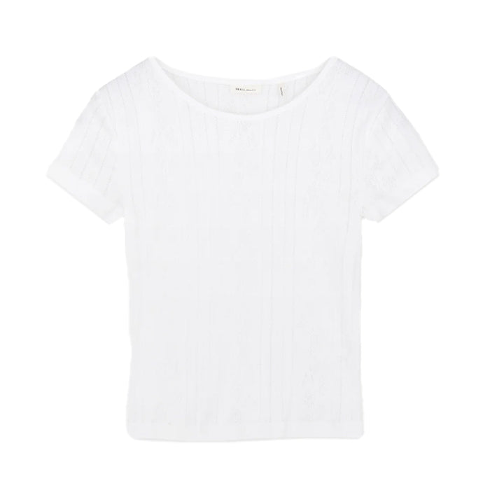 T-shirt i økologisk bomuld med det fineste hulmønster. Et let og feminint udtryk med korte ærmer og blød pasform.