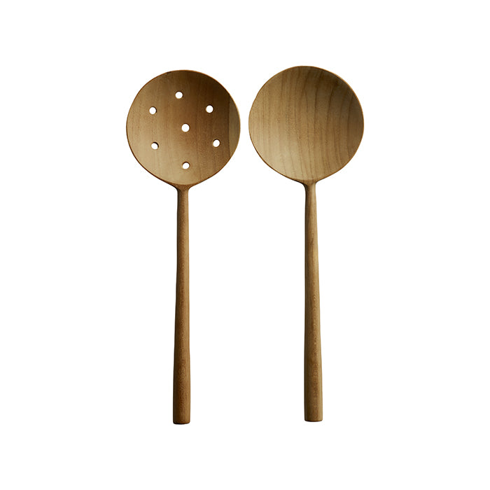 Håndlavet salatbestik i teaktræ - smuk til både servering og bordets styling.