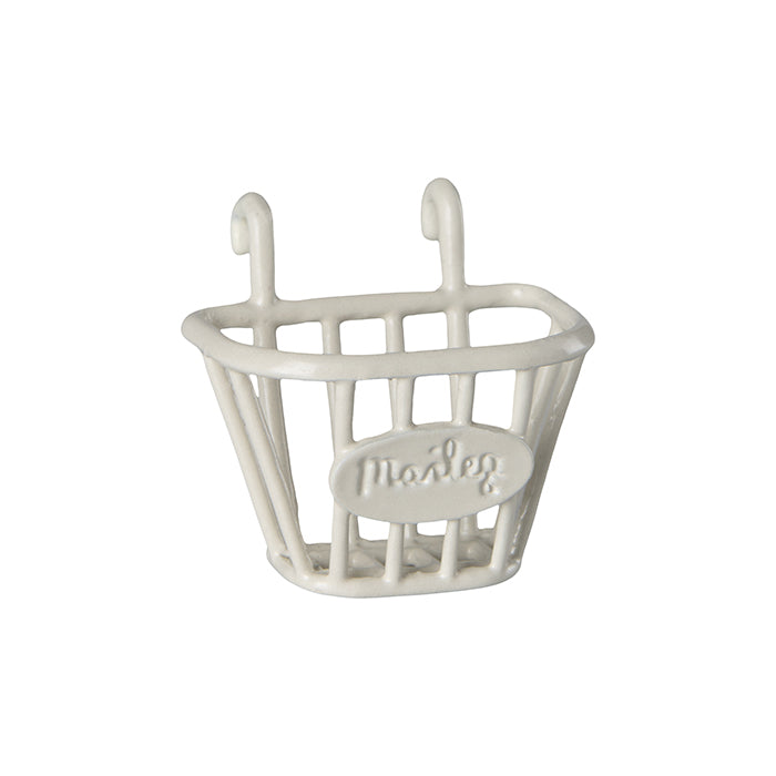 Denne fine cykelkurv i metal passer til cyklerne fra Maileg. Sæt kurven på styret og så har dine mus altid mulighed for opbevaring, når de er på farten.