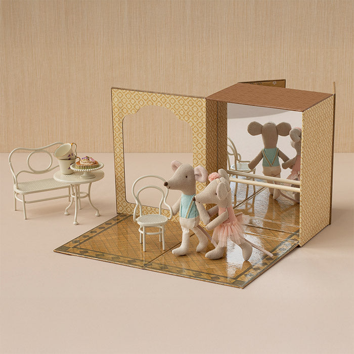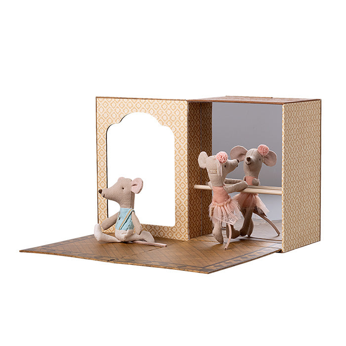 Legesæt, som fungerer både som dansestudie og hyggeligt musehjem med to elegante mus klar til timevis af leg.