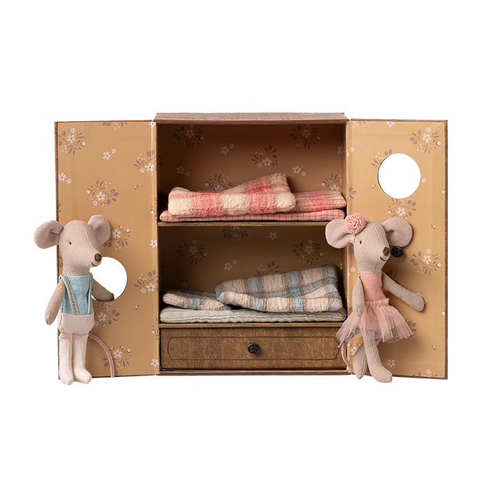 Åbn dørene til en fortryllende verden af dans, stjernestøv og eventyr. Dette vidunderlige Maileg-sæt indeholder en smuk papæske, der fungerer både som et dansestudie og et hyggeligt lille musehjem. Inde i æsken finder du to mus klædt i fine dansekostumer – klar til at udfolde deres kreativitet på scenen eller slappe af efter en lang dag med dans.