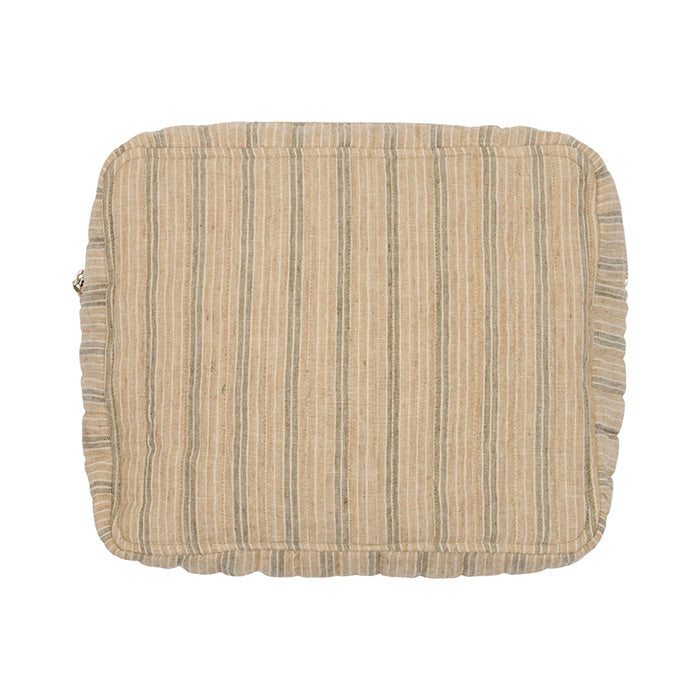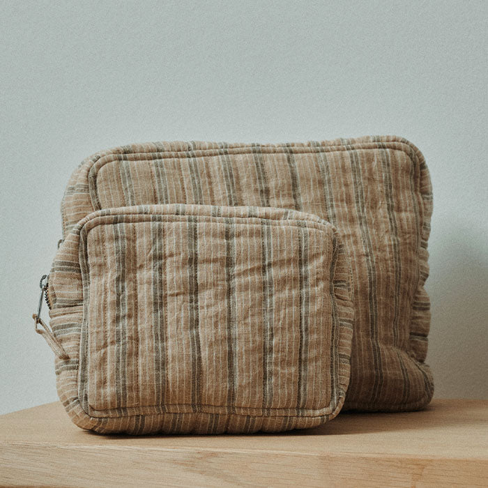 Toilettaske fremstillet i blødt og slidstærkt hør med skønne striber. Den gode praktiske størrelse gør, at du kan bruge den til opbevaring af toiletsager, strikketøjet eller noget helt tredje.
