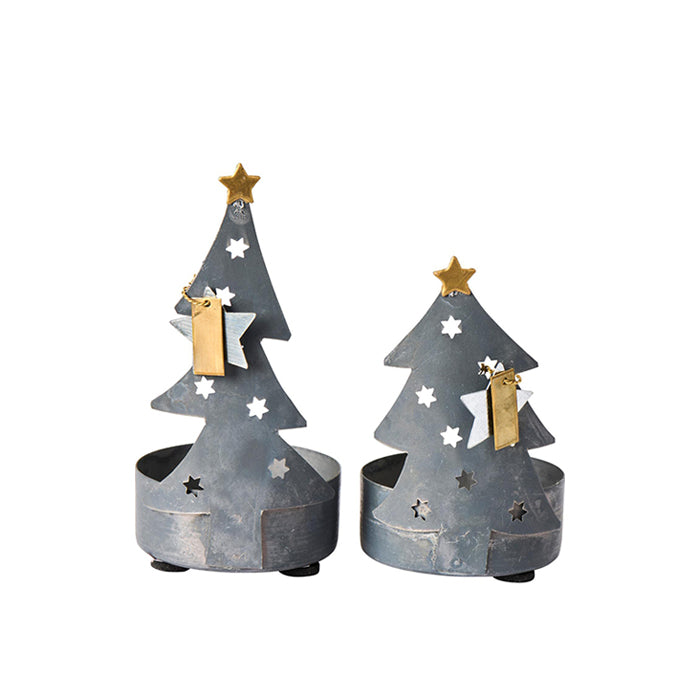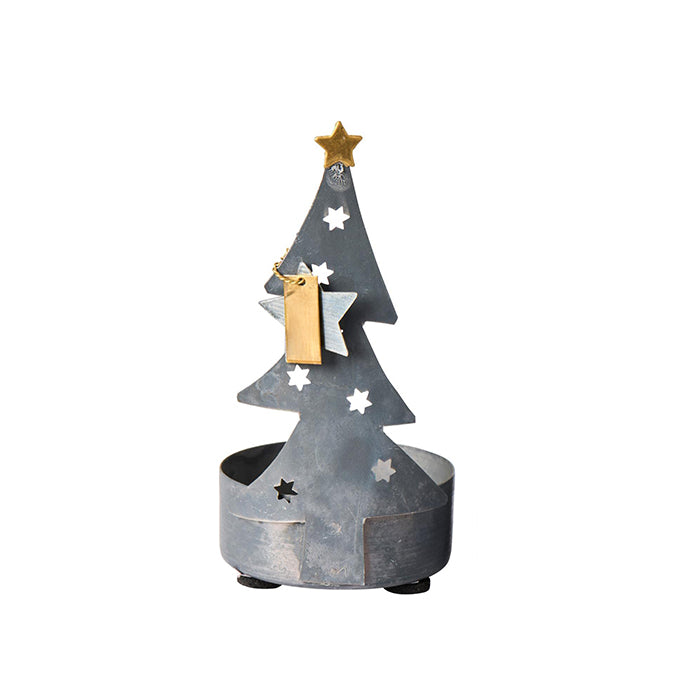 Zinkstage til fyrfadslys med juletræ-motiv – perfekt til at skabe hyggelig stemning i dit julehjem.