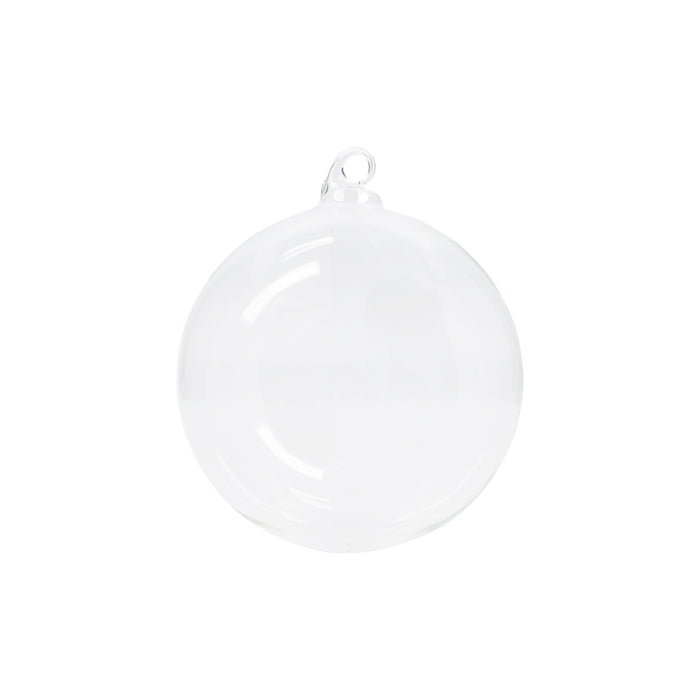 Tidløs julekugle i klart glas, som kan pyntes med satinbånd og vintergrønt.