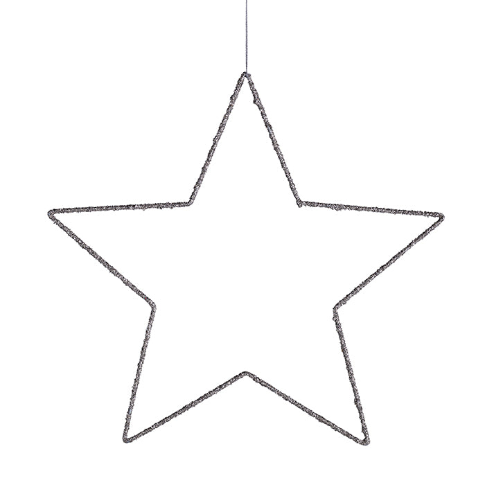 Ekstrastor stjerne belagt med sølvglimmer af spejlstøv - fin i vinduet eller på døren eller skabet. Den er del af en serie bestående af stjerne, sløjfer og fugle i flere størrelser - alle med sølvglimmer