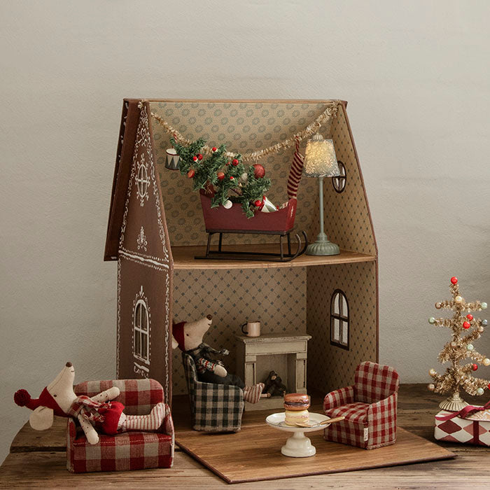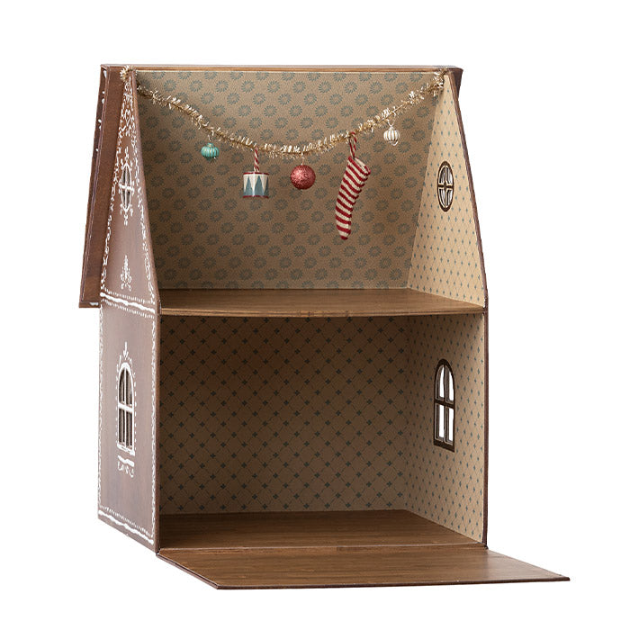 Mailegs fine honningkagehus i to etager, der kan tages frem år efter år. Huset passer til alle de små mus og er en oplagt adventsgave med mange timers leg.