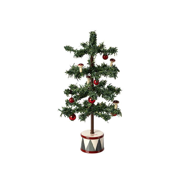 Det fineste miniature juletræ til mus. Træet er pyntet med julekugler og små svampe. Som en ekstra detalje kan man tænde lyset i juletræet via batteridrevent lys. Juletræet skaber julestemning både i og uden for dukkehuset og lægger op til mange timer hyggelig juleleg med de små Maileg venner.