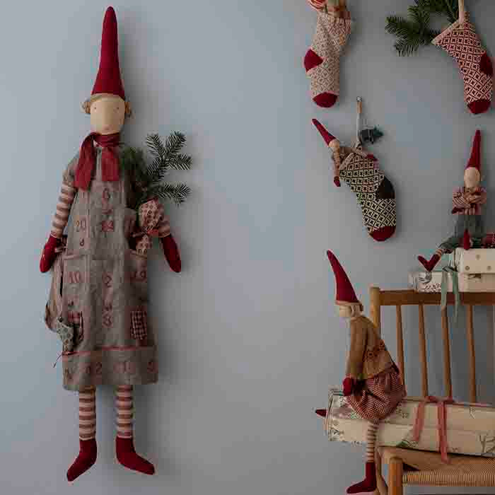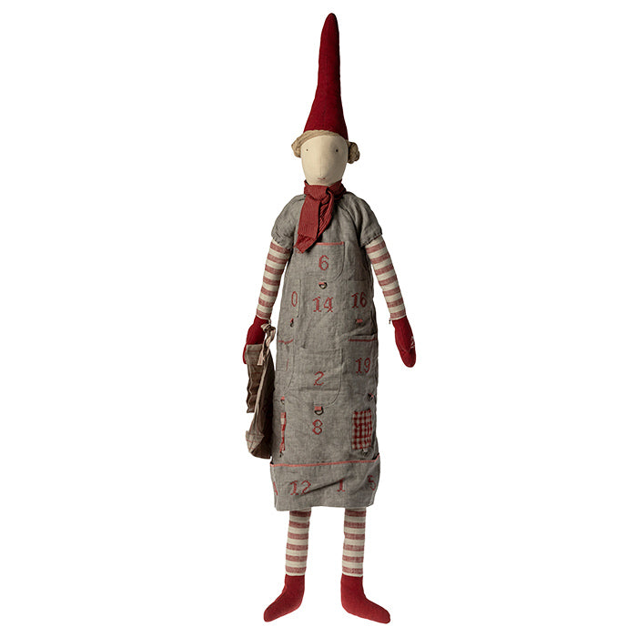December er fuld af traditioner, og denne kalendernisse kan blive din næste. Kalenderpigen har 24 ringe/lommer fordelt på sin kjole, som du kan binde små gaver eller slik fast til – én hyggelig nedtælling til julen. Nissen har en lille rem på bagsiden, til ophængning.