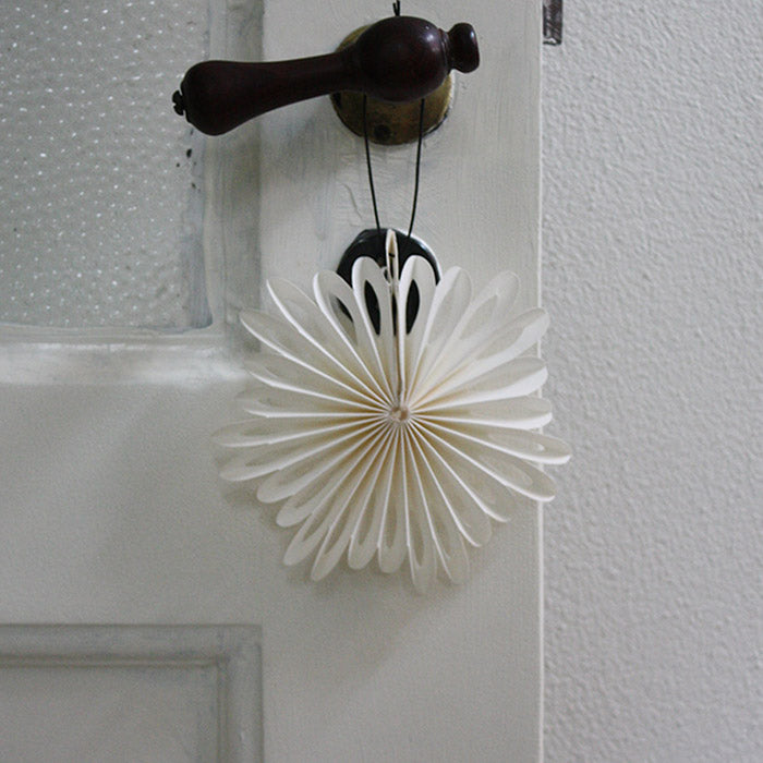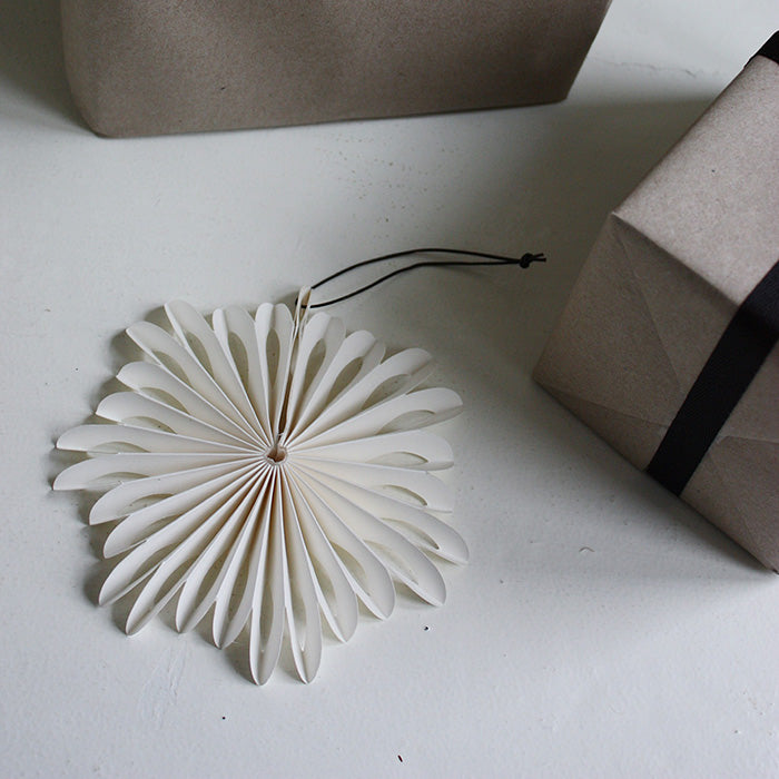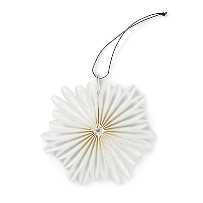 Smukt papir-ornament, der vil pynte på ethvert juletræ eller i julevinduet. Formen er inspireret af vinterens iskrystaller.