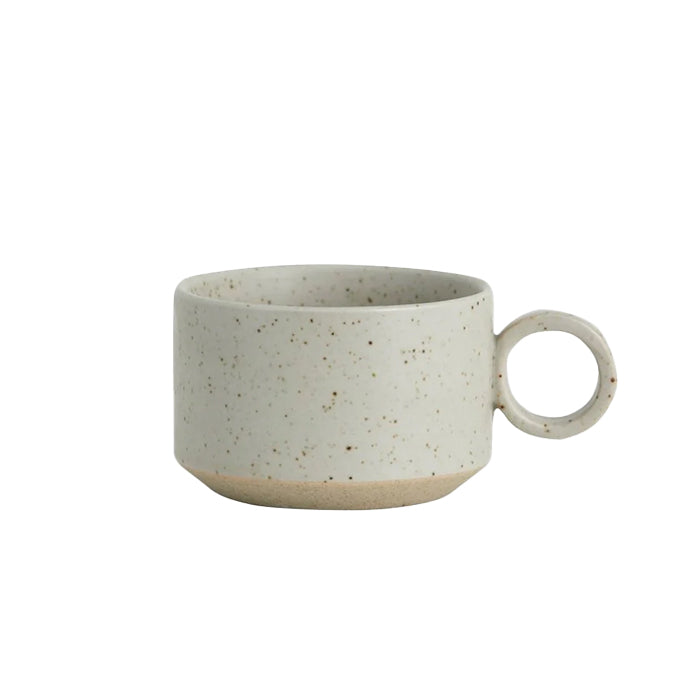 Simpel stentøjskrus med hank med rustik glasur. Hver krus har sit eget udtryk pga. brændingens høje temperatur. Det tåler både mikroovn og opvaskemaskine
