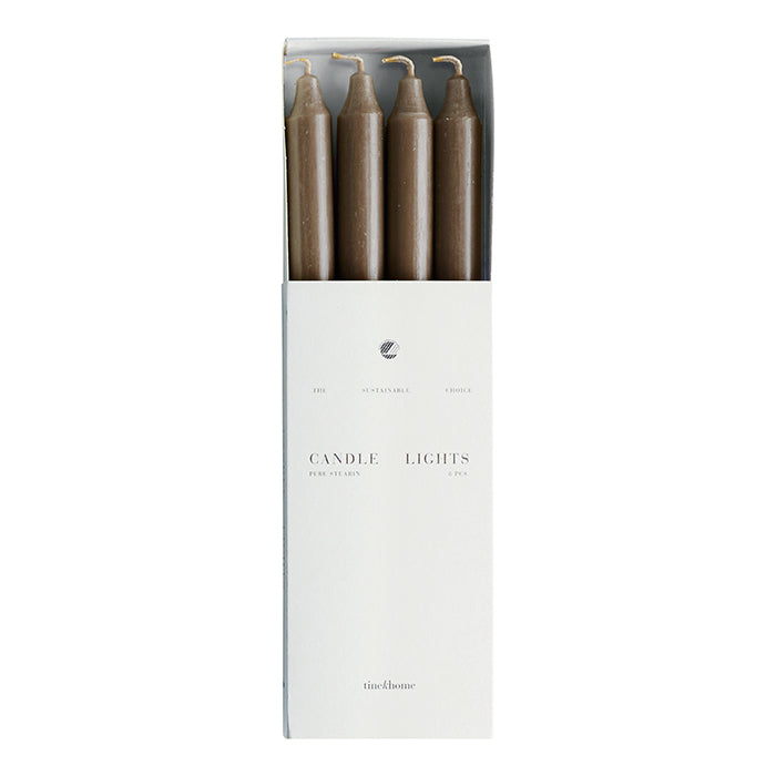 Danskproduceret kronelys i den smukkeste mørkebrun - perfekt til efteråret. I pakken er 8 svanemærket lys i ren stearin. Hvert lys har en brændetid på ca. 11 timer.
