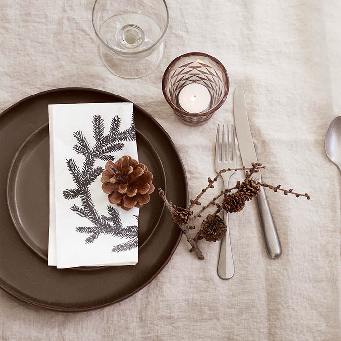 Papirservietter med sort grankrans- perfekt til julens festligheder. Den klassiske farve gør, at den passer til de fleste opdækninger.