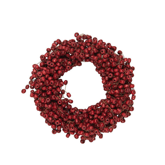 Tilføj personlighed til dit julehjem med denne smukke evighedskrans af røde træperler. Kransen er omhyggeligt håndlavet, og de mange naturfarvede perler skaber et nordisk og enkelt udtryk. Hæng den på væggen eller brug den som dekoration med dit kalenderlys.