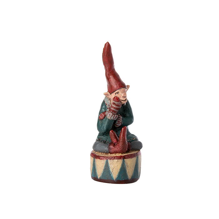 Noël nisserne er et samleobjekt for mange. Her sidder den lille nisse og hviler sig på en tromme.