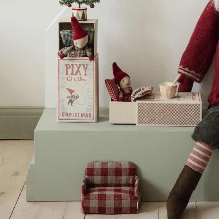 Giv de små en ny lille juleven - nissen Elf. Han bor i en smuk tændstikæske, hvor han kan sove i blødt sengetøj. Elf passer perfekt ind i Mailegs juleunivers og honningkagehusene.