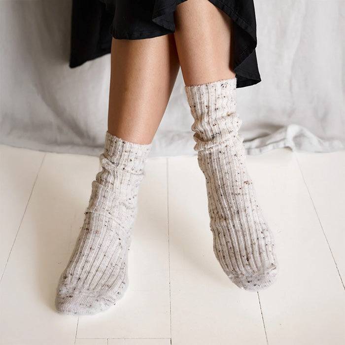 Tykke meleret sokker med ribstrikket skaft i en slidstærk uldblanding - ideelle til de kolde måneder.