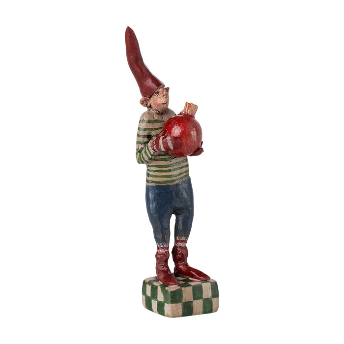 Noël nisserne er et samleobjekt for mange. Her med en rød julekugle.