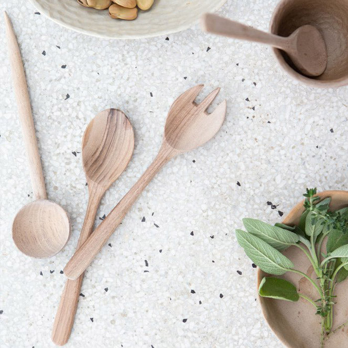 Håndlavet salatbestik i en praktisk lille størrelse, som vil pynte på ethvert sommerbord - i salaten eller på fadet. Da salatbestikket er lavet i valnøddetræ, frigiver det ingen skadelige kemikalier. Bestikket tåler ikke opvaskemaskinen.