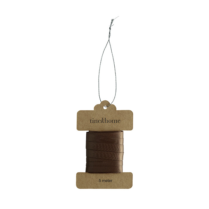 Gavebånd i satin i den skønneste brune farve - perfekt til julens dekorationer, kranse eller hvis du ønsker at give din gaveindpakning til ekstra kærlighed.