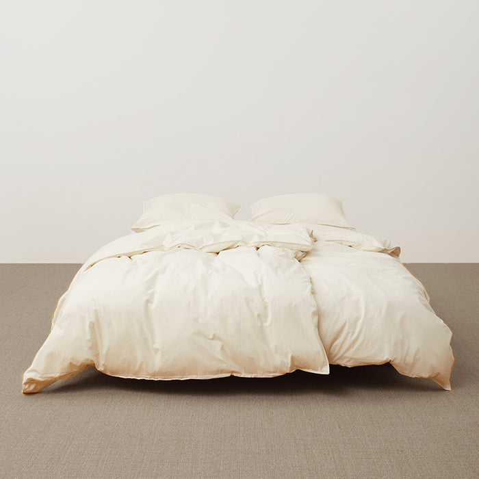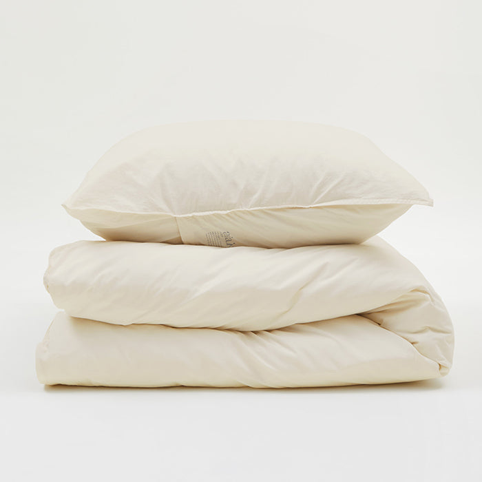 Det skønne sengetøj i 100% økologisk bomuldspoplin fra Aiayu, der knitrer på den helt rigtige måde. Sengetøjet er blødt, let og åndbart og føres hos Butik Gemakker i flere afdæmpede og holdbare farver. Farven Pure Ecru er varm hvid/creme.