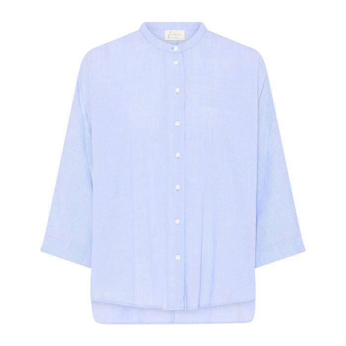 Skjorte i lækker blød bomuldskvalitet. Skjorten har kinakrave og sidelommer og ærmerne er 3/4 længde. Skjorten er lidt længere bagpå end foran.