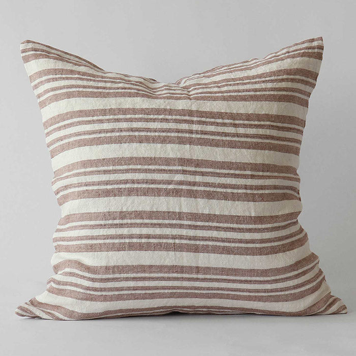 Klassisk stribet hørpudebetræk i rødbrun, som kan bruges både i sofaen og i sengen. Betrækket er af højeste kvalitet, så du er sikret en pude, som holder i mange år.
